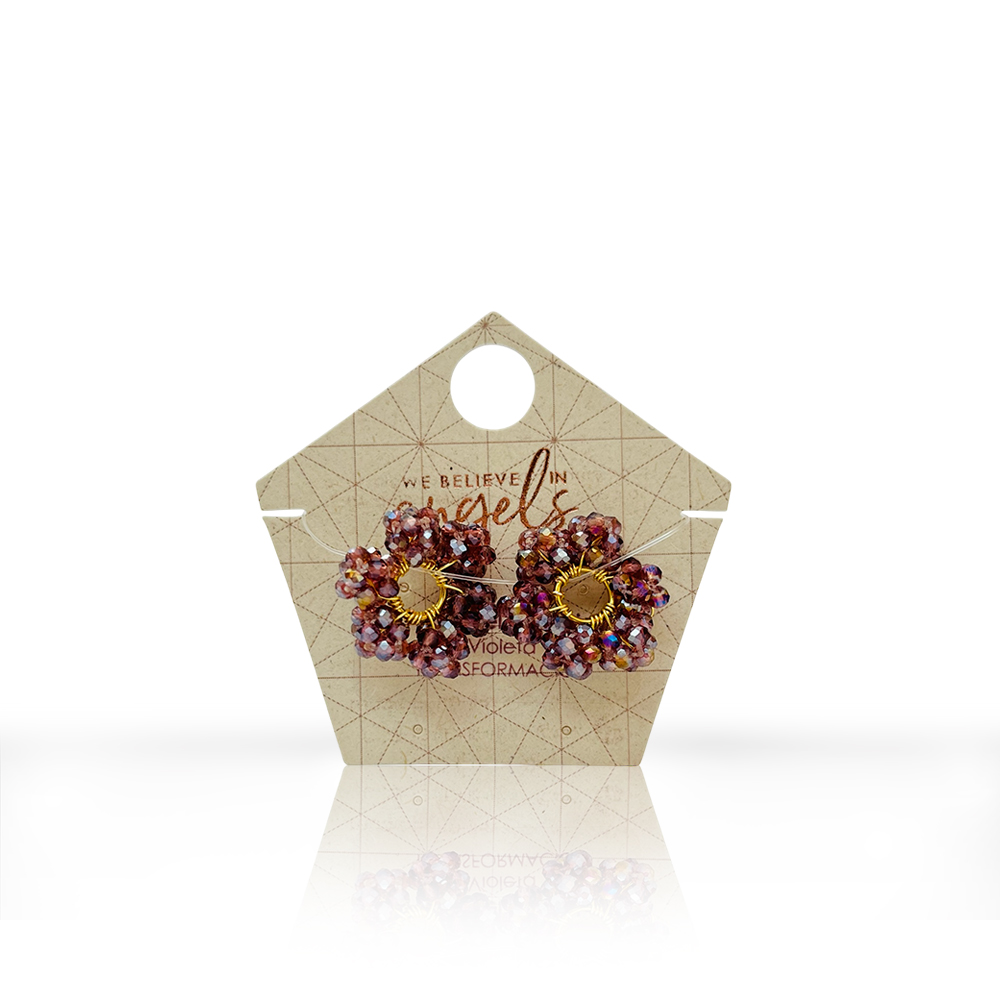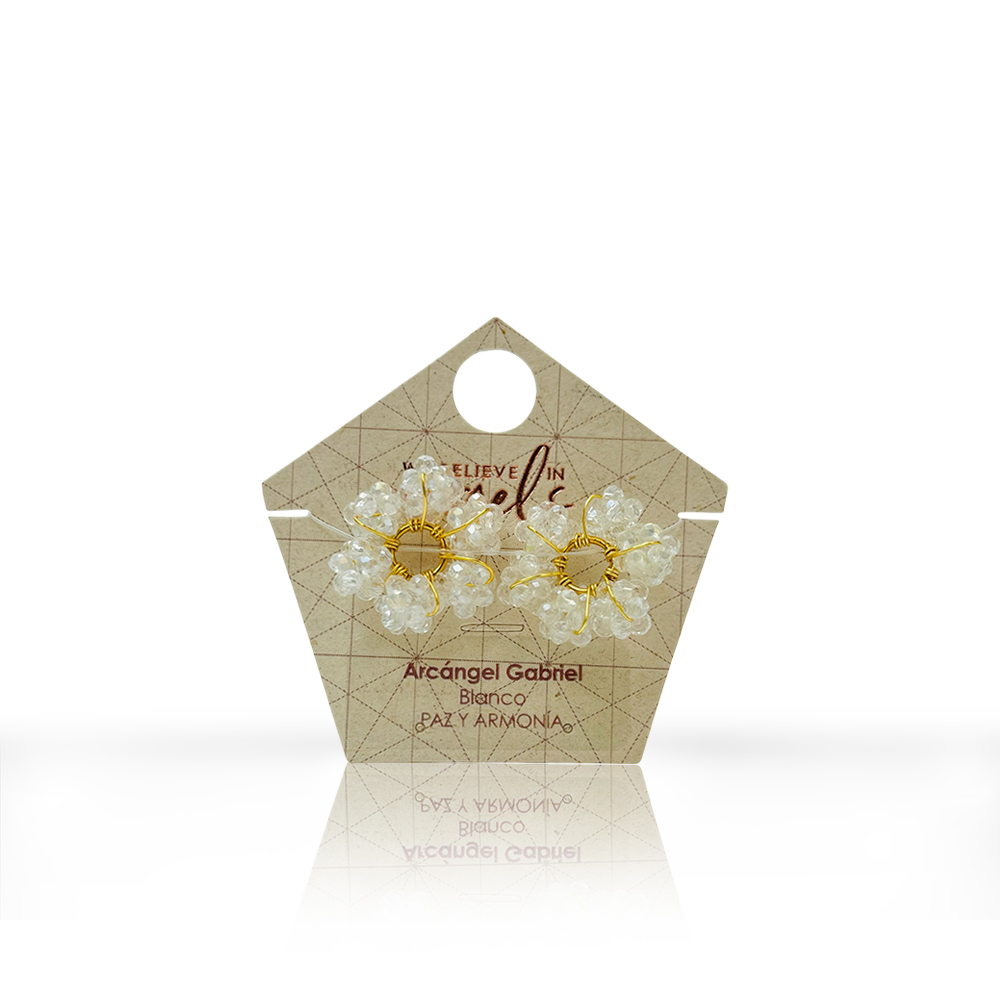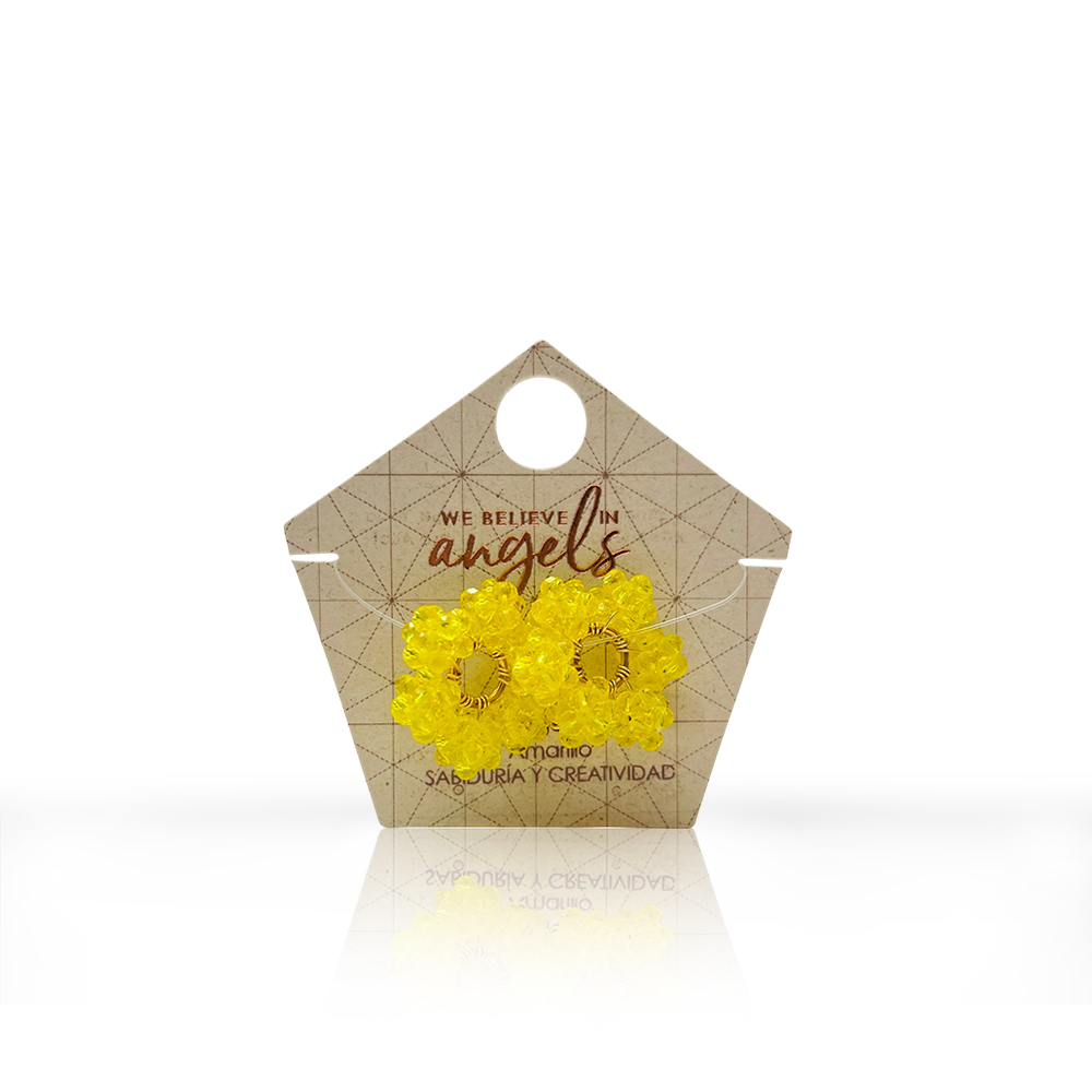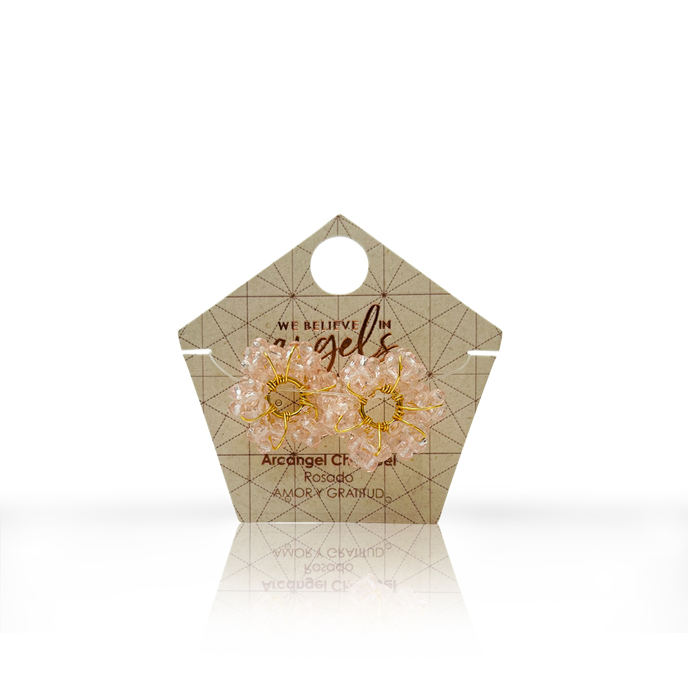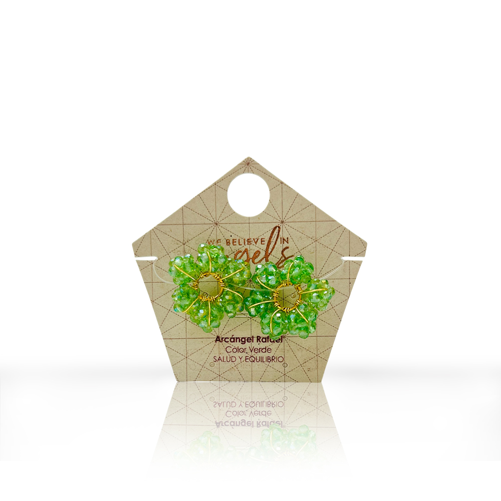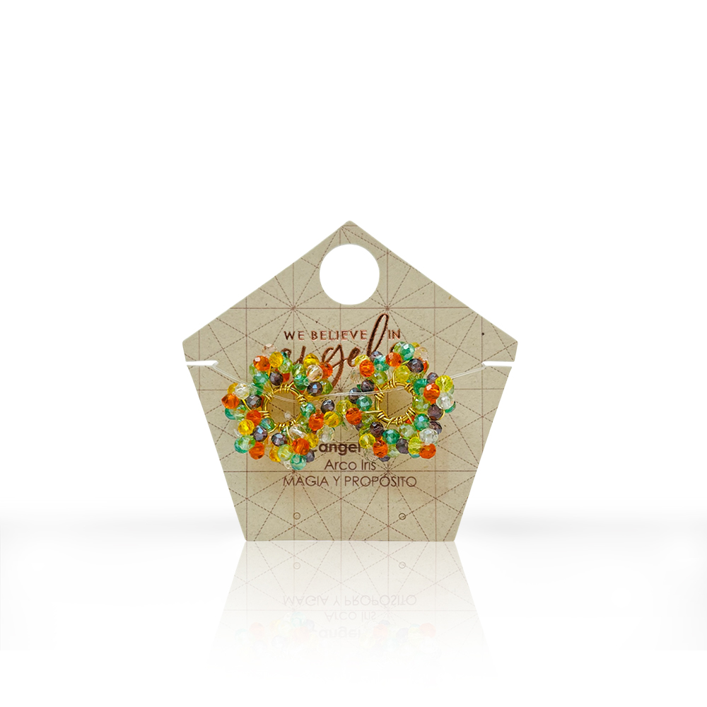 Dijes intercambiables. Cada par incluye 2 dijes en forma de ruedita, compuesto por seis hexaedros elaborados a mano en rondelas de cristal. Ideal para llevar en tus candongas, permitiéndote elegirlo según el propósito, intención o estado de ánimo.