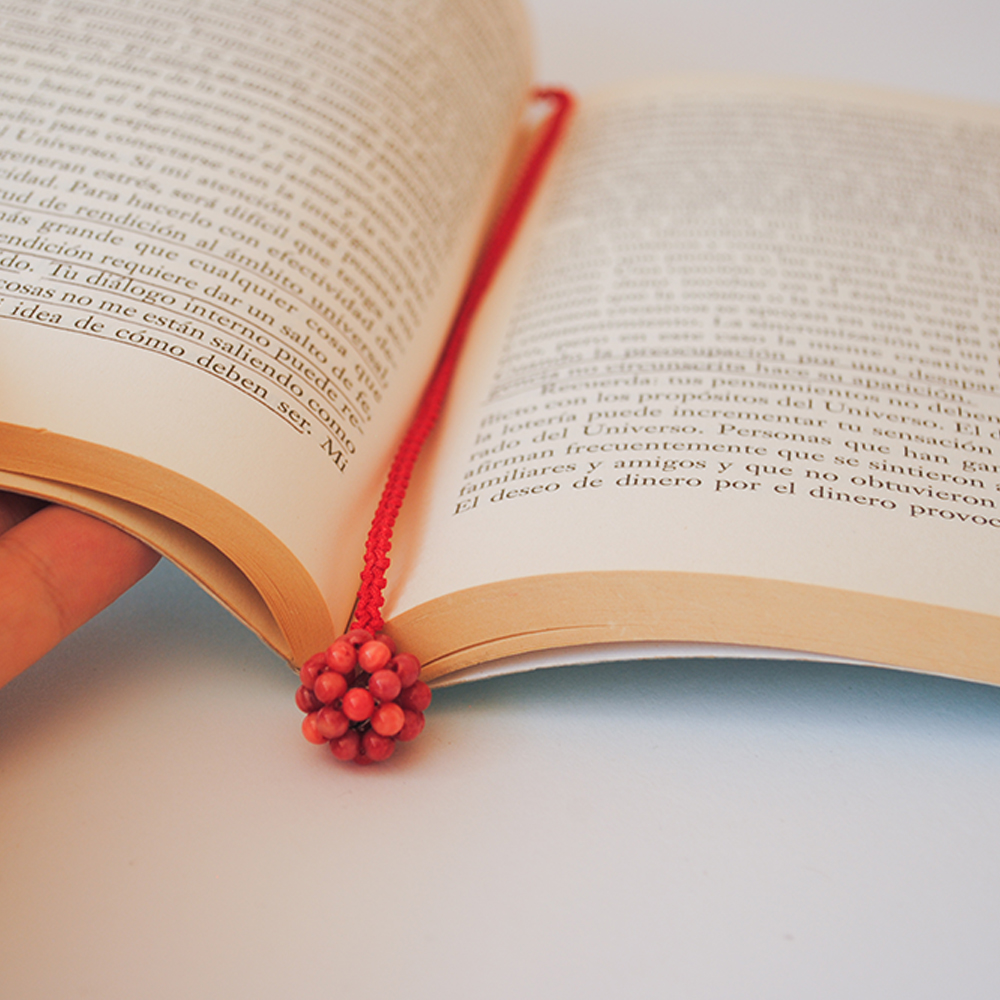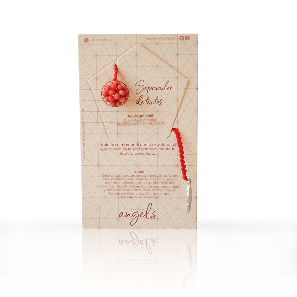 Separador de libros con llamador de Ángeles tejido a mano en piedras naturales. Úsalo para marcar el punto exacto en el que queda detenida temporalmente tu lectura o escritura.